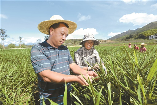 9月17日,汝城县文明瑶族乡沙洲现代农旅示范基地,农户在查看小黄姜的生长情况。湖南日报·华声在线记者 田超 摄