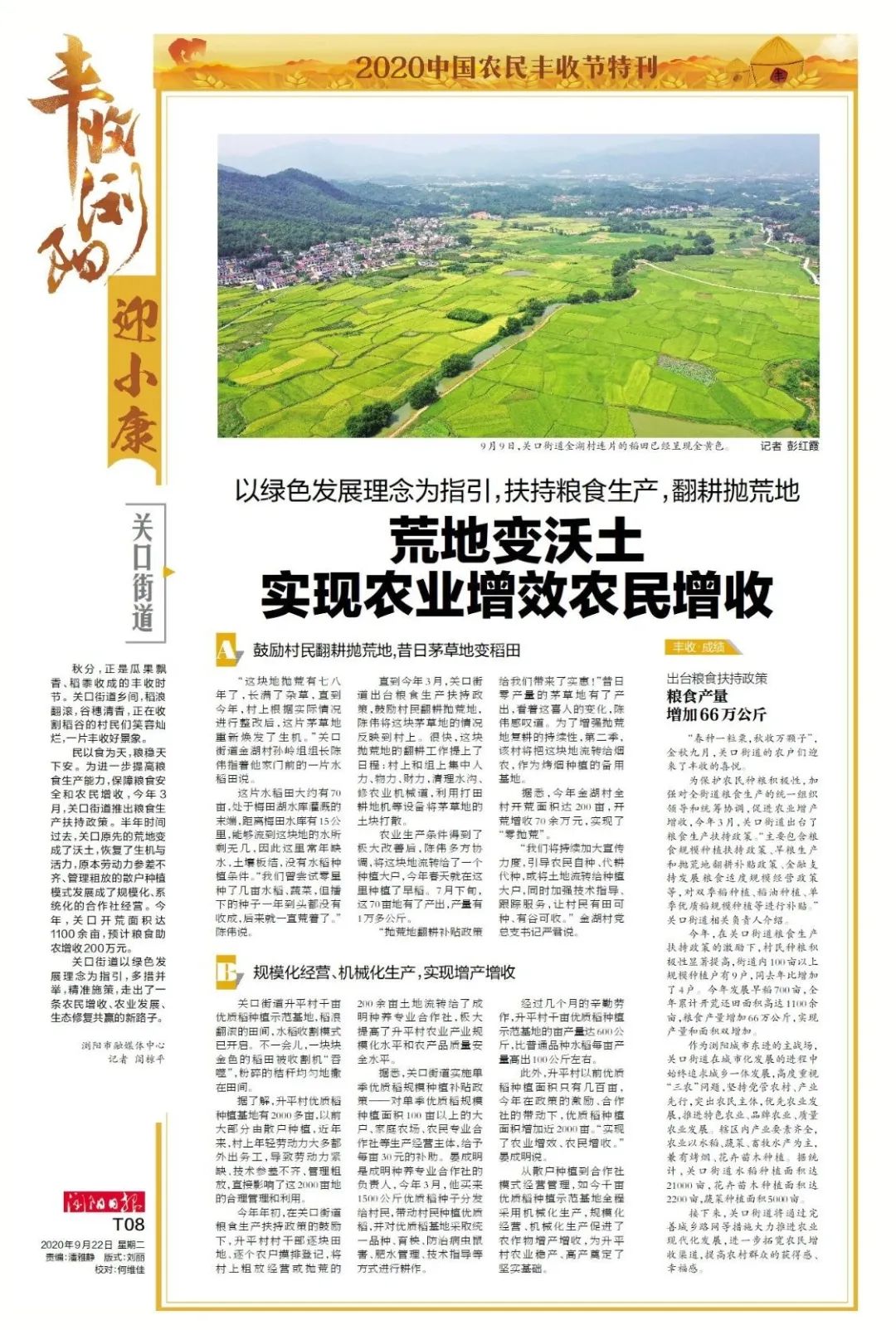 民以食为天,粮稳天下安。为进一步提高粮食生产能力,保障粮食安全和农民增收,今年3月,关口街道推出粮食生产扶持政策。半年时间过去,关口原先的荒地变成了沃土,恢复了生机与活力,原本劳动力参差不齐、管理粗放的散户种植模式发展成了规模化、系统化的合作社经营。今年,关口开荒面积达1100余亩,预计粮食助农增收200万元。