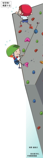 运动专家表示,孩子玩室内攀岩,如果在教练一对一帮助下,安全是有保障的,但如果孩子不做准备活动,教练不讲解注意事项,那么在攀爬中,孩子很容易受伤。此外,孩子登顶后,虽然有保护员在地面调节绳索,帮助孩子降落,但如果不小心,使绳索和攀岩墙距离过近,孩子也可能发生危险。