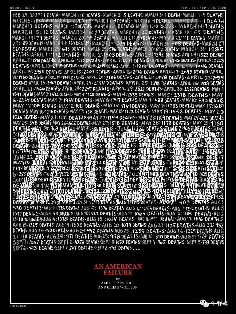 2,美国人应该也在反思。一个世界上最强大的帝国,一个曾让无数人羡慕的美国,在21世纪发生这么惨烈的死亡,世界第一,真的让人很无语。《时代》就很痛心疾首,在所有发达国家中,也只有美国情况失控了。