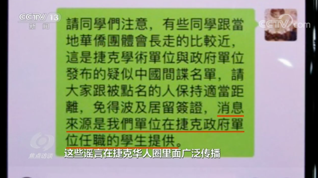 2019年1月,郑宇钦收到了三篇美国一反华基金会的研究员撰写的炒作中国威胁论的文章链接。郑宇钦看到后如获至宝,认为这是一个很好的抹黑丑化中国在捷克外交政策的机会。他随即把这三条消息在多个华人群里进行转发,谎称文章是他从捷克政府单位内部获取的,同时还添油加醋,杜撰了很多虚构的事情。