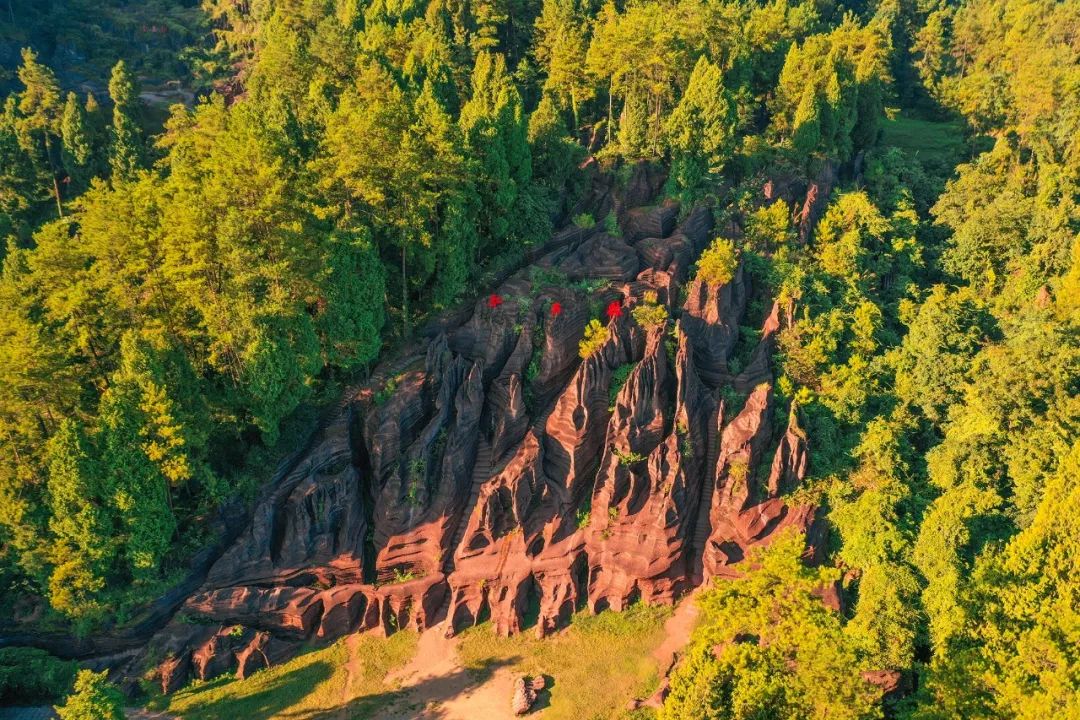 秋天,是怡人的季节,云天收夏色,木叶动秋声,昔日翠绿的枝桠,即将被红黄所浸染,此时的世界是五彩斑斓的,充满着喜悦,正如湘西红石林,因为秋的渲染而变成了童话世界。