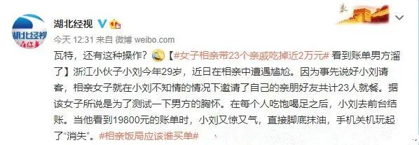女子相亲带23个亲戚吃掉近2万元,