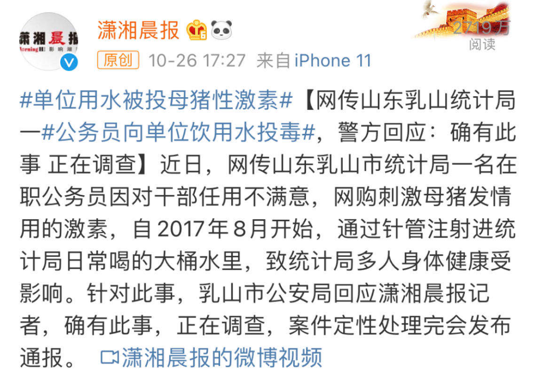 近日,一则关于山东威海乳山市统计局“投毒”的消息,持续在网络上发酵。