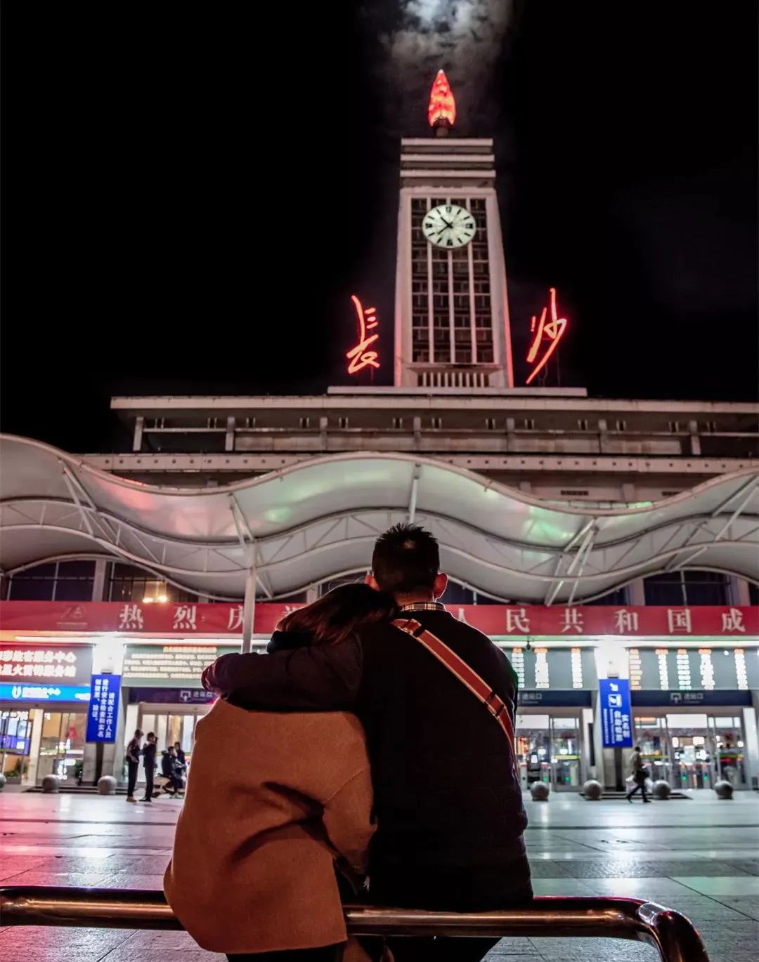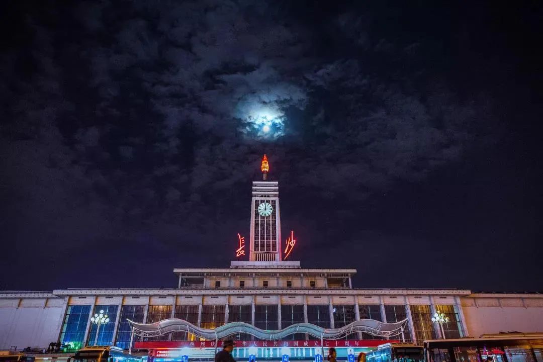2018年,夜色中的长沙火车站