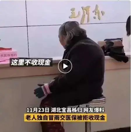11月23日,网传视频显示,湖北宜昌一老人冒雨用现金交医保时,工作人员称“不收现金,要么告诉亲戚,要么你自己在手机上支付”。24日,相关工作人员回应称,当时老人未带相关证件,后续已联系其子女帮忙缴费。截至27日,话题#老人冒雨用现金交医保被拒#阅读量超过6.5亿,讨论超过8.6万。