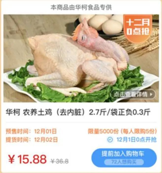 15.88元买2.7斤土鸡。某社区团购平台截图
