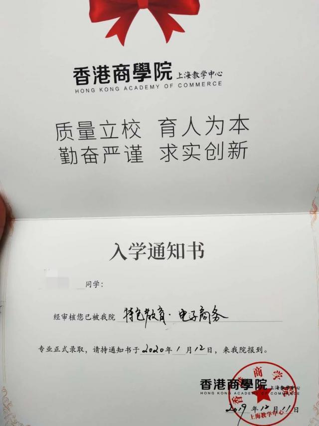 ▲小杰今年 1 月报名时,这所学校还自称 " 香港商学院 "
