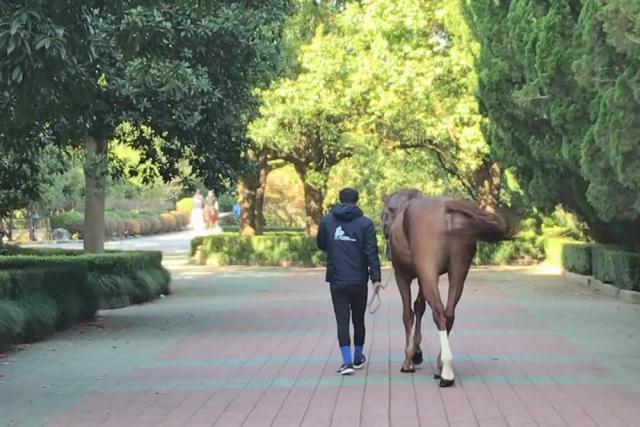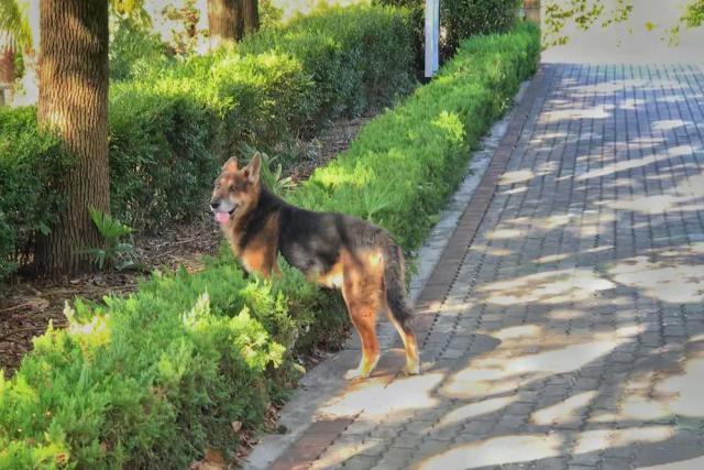 在这条路上,不时会有散养的大型犬出没,还有附近马术场的人遛马。