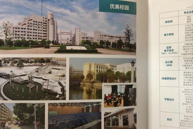 ▲学校宣传册中关于学校面貌和 " 保专升本 " 的宣传