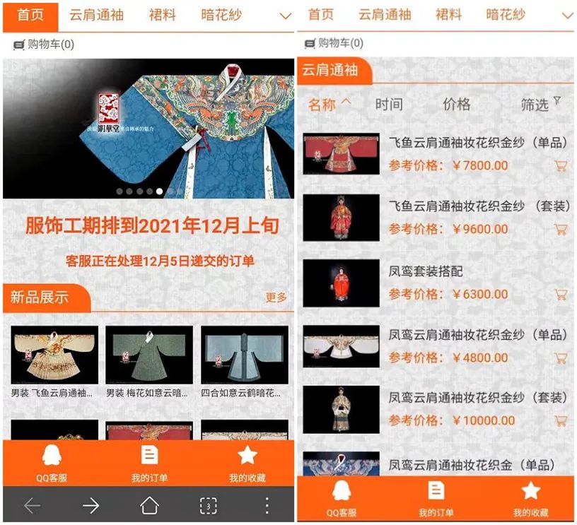 “我和身边的朋友比较追求汉服的性价比,购买的衣服大概在200-500元之间,这个区间在行业内也比较多见。当然,也有不到100元的‘白菜价’汉服,而材质名贵、做工复杂的汉服则可能价值上万。”小杏介绍道,圈中一家较为知名的汉服品牌价格多在数千元甚至近万元,但愿意为此一掷千金的粉丝不在少数,其预约的工期已安排到2021年12月。