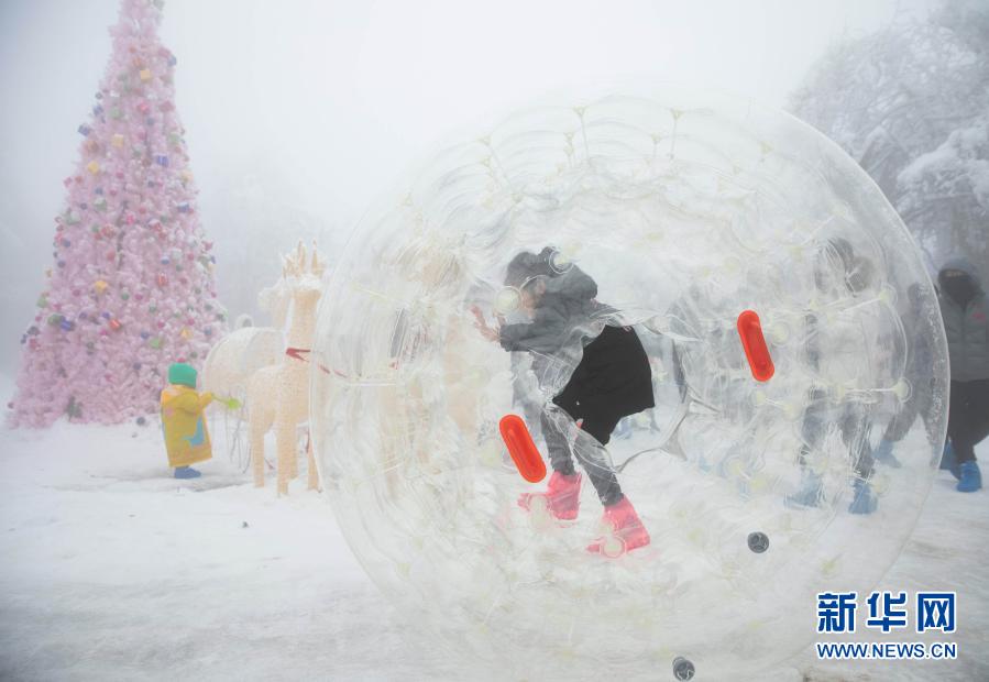 12月12日,在峨眉山雷洞坪滑雪区,一位小朋友在玩雪地悠波球。12月12日,第22届峨眉山冰雪温泉节开幕,将持续到明年2月。据悉,今年气温低、雪期早、雪量大,雾凇、树挂等冰雪奇观悉数登场,雷洞坪滑雪场也开始接待游人。新华社记者 江宏景 摄