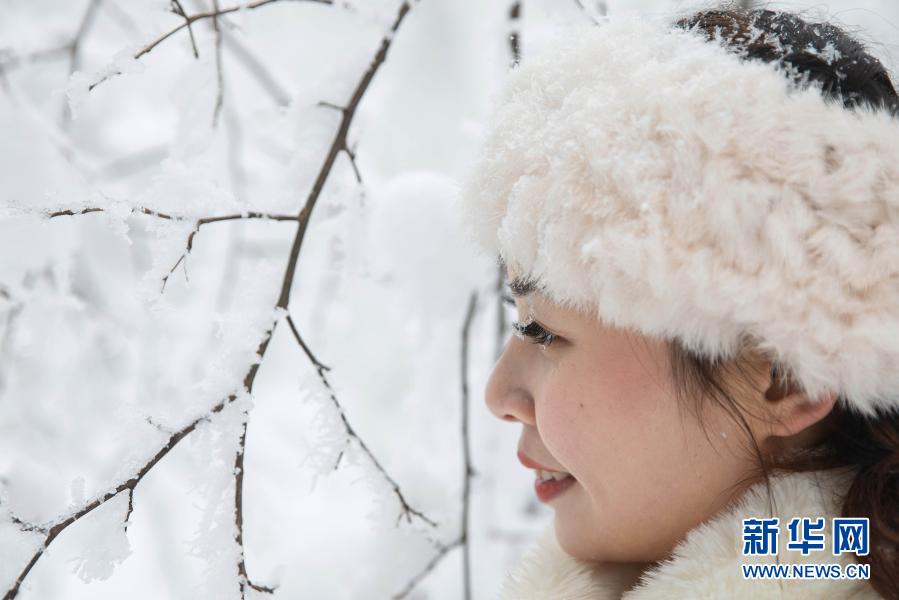 12月12日,一位来自成都的游客在峨眉山冰雪中赏雪。12月12日,第22届峨眉山冰雪温泉节开幕,将持续到明年2月。据悉,今年气温低、雪期早、雪量大,雾凇、树挂等冰雪奇观悉数登场,雷洞坪滑雪场也开始接待游人。新华社记者 江宏景 摄