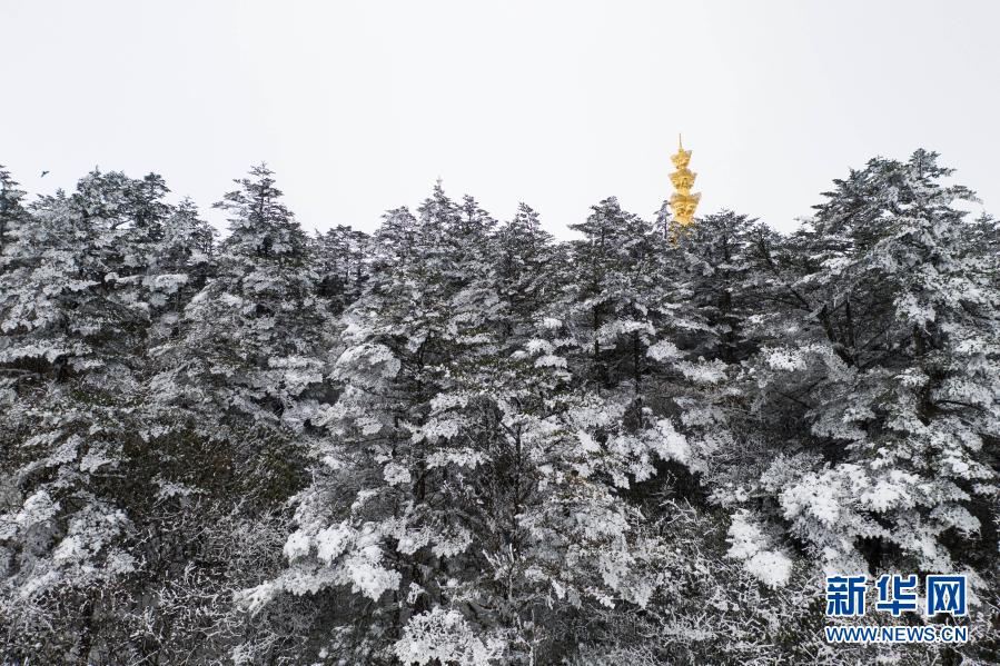 12月13日拍摄的峨眉山金顶一角(无人机照片)。12月12日,第22届峨眉山冰雪温泉节开幕,将持续到明年2月。据悉,今年气温低、雪期早、雪量大,雾凇、树挂等冰雪奇观悉数登场,雷洞坪滑雪场也开始接待游人。新华社记者 江宏景 摄