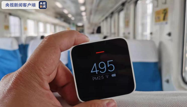 另据记者测试,在车辆连接处有人同时吸烟时,车厢内多处的PM2.5数值均超过400以上,属重度污染级别。而当天列车外的PM2.5值测试结果仅为25左右。