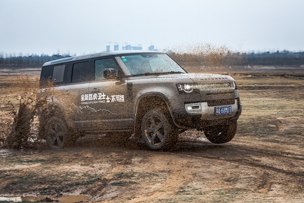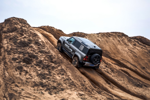 当然,对于卫士来说,越野路段才是真正发挥它实力的主场。在南昌郊外的河滩上,颠簸的土路、大坑、沙山、水坝斜坡、涉水路段等等普通车型难以企及的路段,却成为了全新路虎卫士展示全地形科技的“游乐场”。