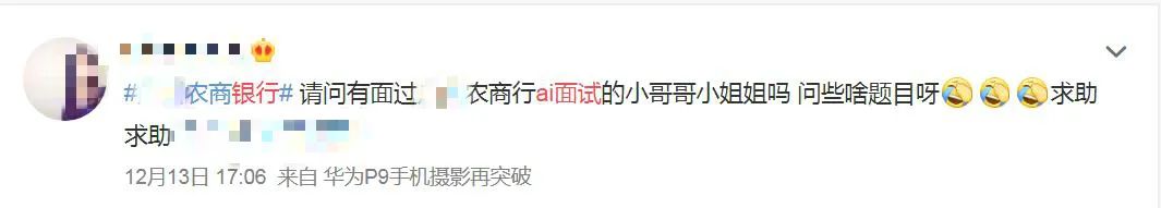 在北京某985高校就读的苏笑也参加了某银行总行的AI视频面试,她介绍,自己遇到的问题大致分两类,一种是偏行为类,比如你在大学中最有挑战的一件事;另一类是看法观点类,比如对某一社会现象进行点评。“很多人还不适应对着镜头作答,有时也会出现掉线需要重新录制的情况。”苏笑称。