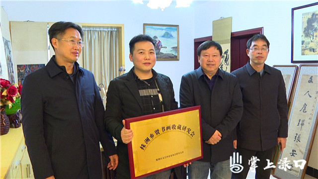 12月22日,株洲市政协相关领导来到刘涛家中参观,并为他颁发株洲乡贤书画收藏研究会牌匾,勉励他为株洲乡贤文化事业发展多做贡献。