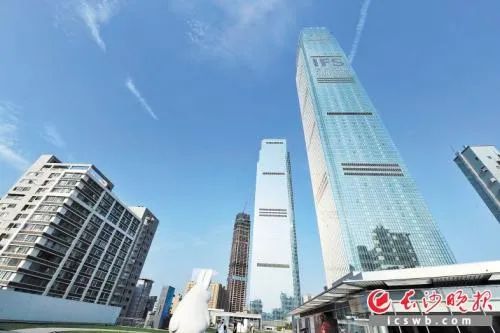 位于省会长沙的五一商圈、解放路与黄兴路交汇处的九龙仓长沙国际金融中心(简称“长沙IFS”或“长沙国金中心”),以其主楼452米的高度在当年已建成高楼中排名中国第六、中部第一,是长沙天际线最靓丽的所在。