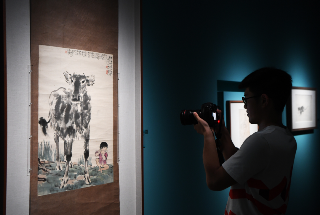 2020年6月19日,媒体记者在拍摄徐悲鸿作品《牧童与牛》。新华社记者 王全超 摄