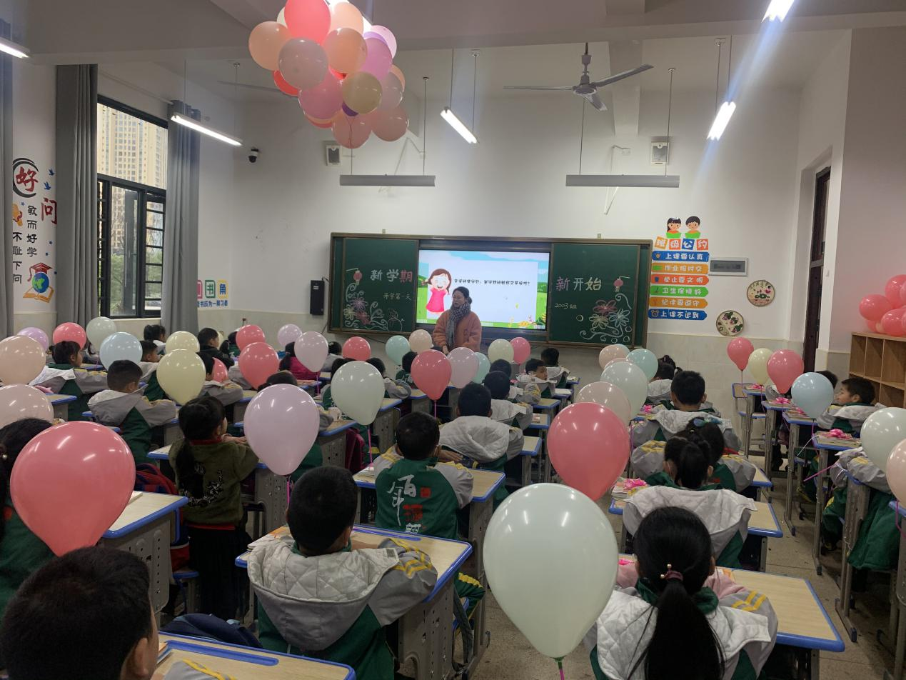 娄底振翩学校组织各班围绕“文明礼仪、安全教育、春季传染病预防、新冠肺炎预防、学习好习惯、新学期新打算”六个方面举行别开生面的“开学第一课”活动,班主任根据学生的年龄特点、学校的实际情况,与家长志愿者共同布置教室,课桌上精心包装的课本,一个个鲜艳的气球,一张张寄语厚望的纸条,一份意料之外的小礼物,让学生感受到新学期充满希望与挑战。