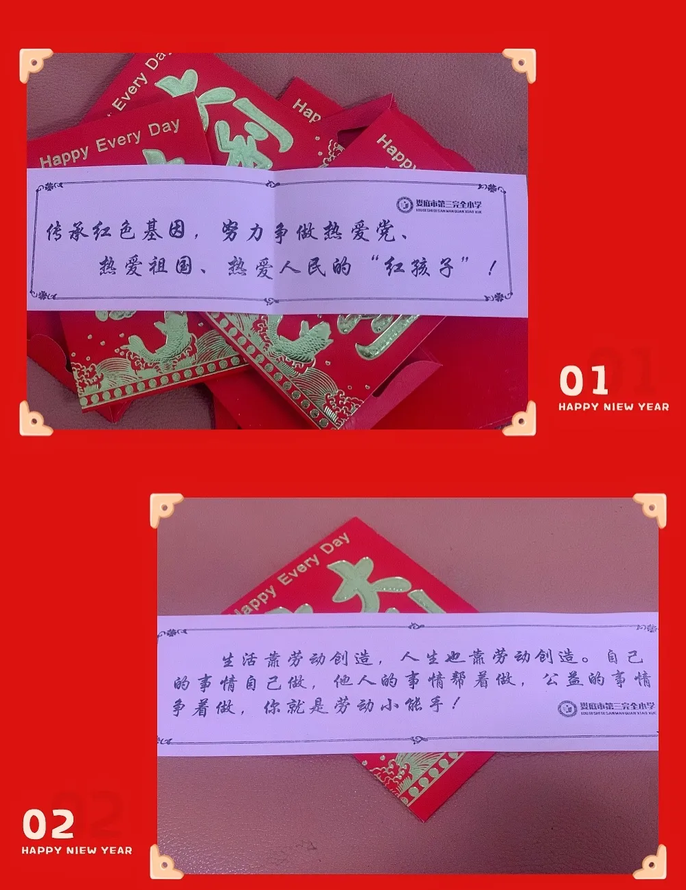 开学第一天,娄底三小为孩子们准备了特殊的“开学红包”,别样的开学仪式让师生们的欢声笑语遍布整个校园。“红包”中一句句新学期寄语,都融进了老师对孩子们的期盼与厚望,立品行、养习惯,传承红色基因,争做新时代好少年。