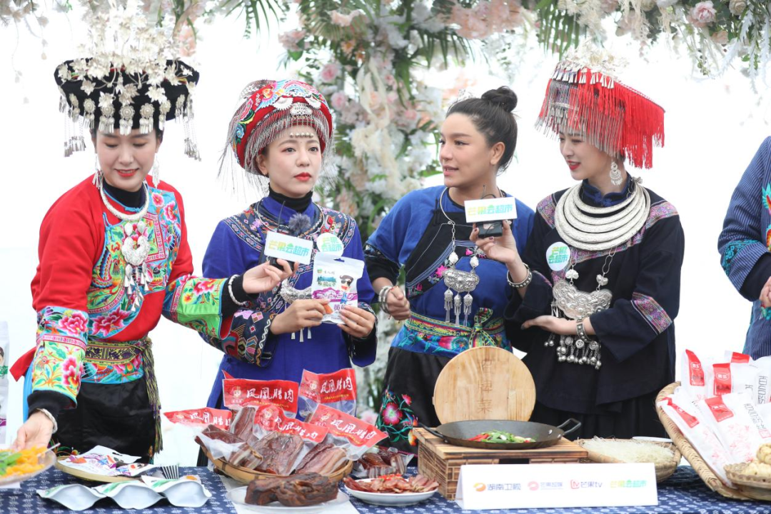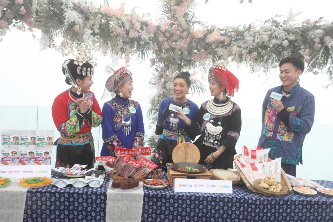 湘西不仅景色优美,美食特产也是家喻户晓。猕猴桃干、湘西腊肉、百合粉丝、湘西泡菜等,是湘西本地常见的特色食品,每一款都能让食客的味蕾得到满足。当下大火的综艺节目《乘风破浪的姐姐2》中三位姐姐——丁当、江映蓉、刘烨现场助阵,组成超强的“美食品鉴官”在直播间为观众推荐独具特色的“湘西宝贝”。
