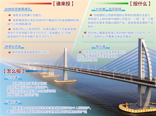 “跨境理财通”分为“北向通”和“南向通”。其中,“北向通”指港澳投资者在粤港澳大湾区内地代销银行开立个人投资账户,通过闭环式资金管道汇入资金购买内地代销银行销售的投资产品;“南向通”指粤港澳大湾区内地投资者在港澳销售银行开立个人投资账户,通过闭环式资金管道汇出资金购买港澳销售银行销售的投资产品。