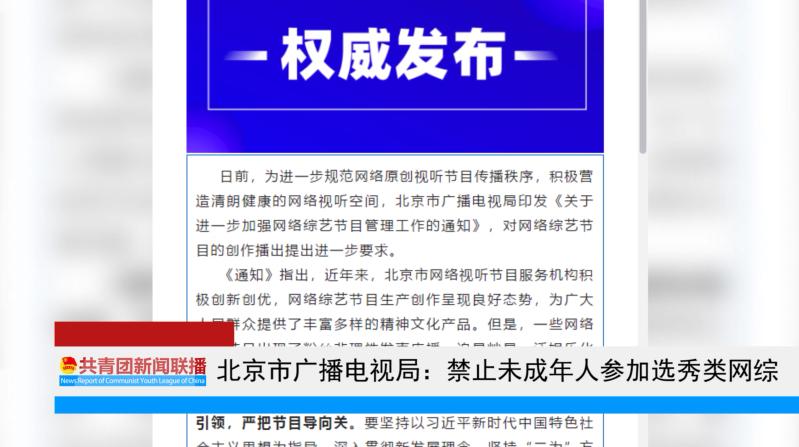 北京市广播电视局:禁止未成年人参加选秀类网综