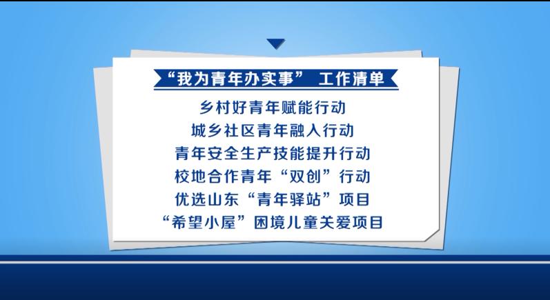 近日,团山东省委深入推进全省共青团党史学习教育走深走实,结合“我为群众办实事”实践活动,推出“我为青年办实事”工作清单,重点做好六大类实事,分别为启动乡村好青年赋能行动、城乡社区青年融入行动、青年安全生产技能提升行动、校地合作青年“双创”行动、优选山东“青年驿站”项目以及“希望小屋”困境儿童关爱项目。