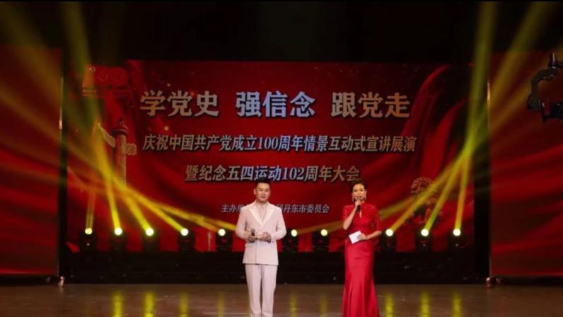 日前,在辽宁丹东市举办了“学党史、强信念、跟党走”庆祝中国共产党成立100周年情景互动式宣讲展演暨纪念五四运动102周年大会。大会在《青春旋律》中开场,金融团工委、丹东抗美援朝精神培训学院、丹东银行团委和国网丹东供电公司团委的青年们表演了《丰碑》、《英雄赞歌——致敬最可爱的人》、《丹东青年唱辉煌》、《生日》等作品,让现场观看的青年沉浸在浓厚的红色学习氛围中,了解党的光辉历史,感悟党的初心使命。
