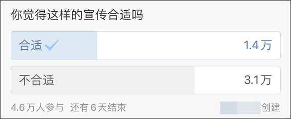 在一份认为这种宣传是否合适的调查中,67%的网友认为“不合适”。