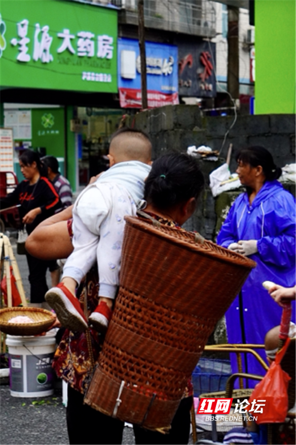 我就是在奶奶的背篓里长大的。奶奶说,她背着我赶场,人多拥挤,从场的这头挤到那头,把我放下来后,发现我的手里拽着一个油粑粑。奶奶笑着说一定是从别的孩子手里抢来的。这应该是背孩子的另一个好处,孩子比较自由。