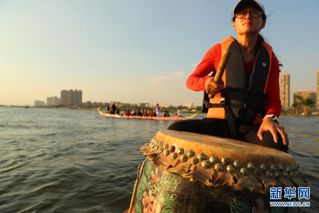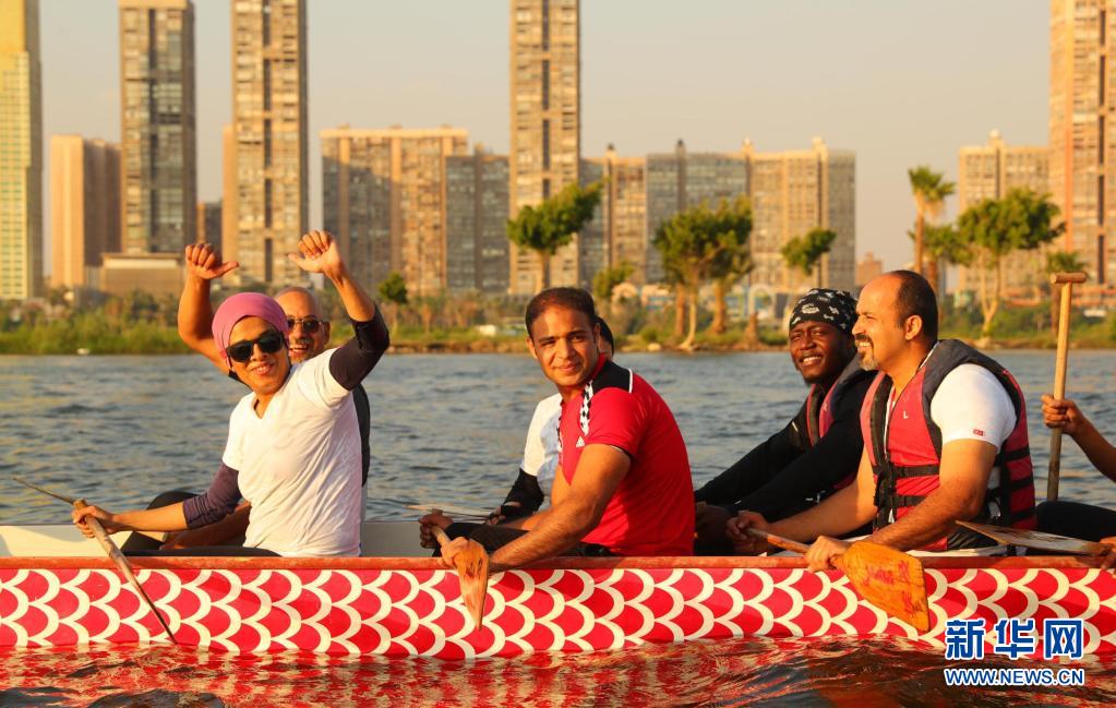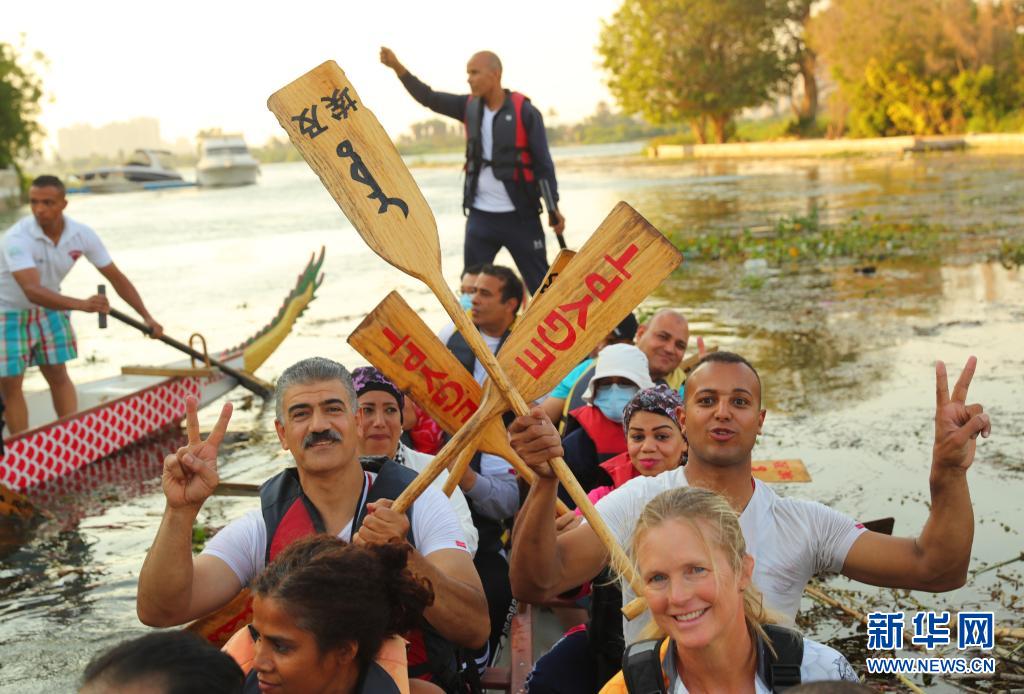 6月14日,在埃及首都开罗,埃及龙舟文化体验基地的龙舟队在尼罗河上参加龙舟竞赛。新华社记者 隋先凯 摄