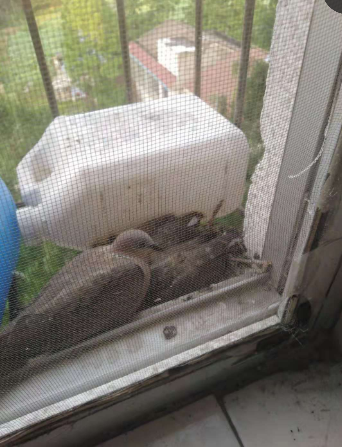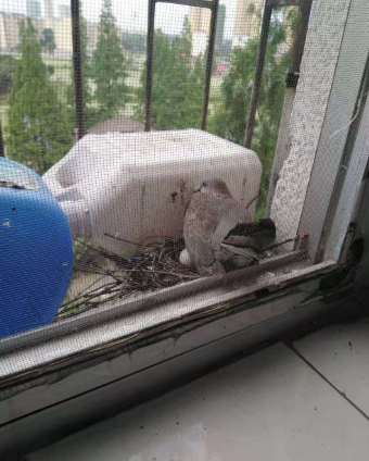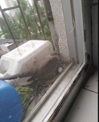 3月30日,我不经意间发现两只斑鸠衔来树枝,在我家洗手间窗外搭建了一个鸟窝。其中一只一住就是整整三周,从没见它挪过屁股,不知道是在做什么。