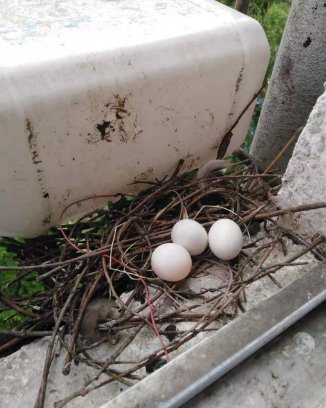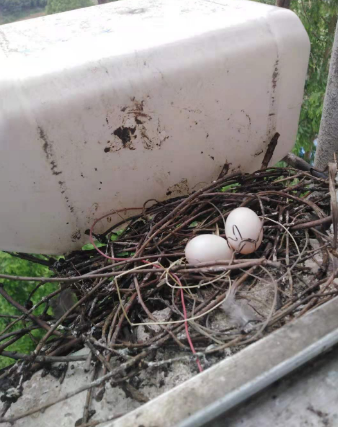不曾想,母鸟才回来不到两天,9号中午又飞跑了,留下两颗鸟蛋裸露在窝……