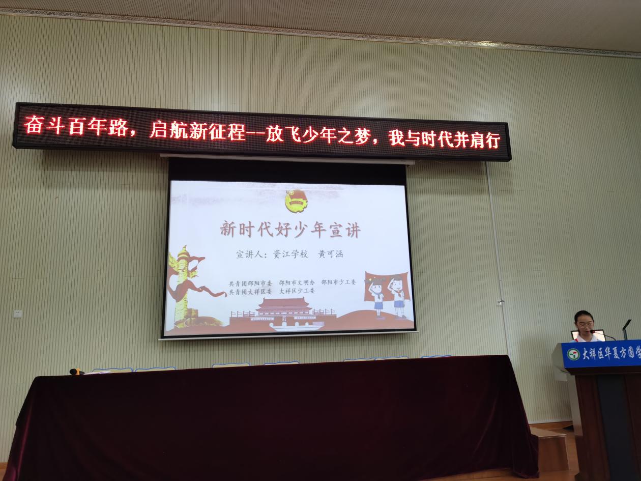 大祥融媒讯: (通讯员团区委)为大力营造庆祝建党100周年浓厚氛围,讴歌中华民族实现伟大复兴的奋斗历程,激发少先队员爱党爱国的深厚情怀,6月16日下午,由共青团邵阳市委、共青团大祥区委联合举办的“奋斗百年路,启航新征程——放飞少年之梦,我与时代并肩行”主题活动在大祥区华夏方圆学校拉开帷幕,共青团邵阳市委书记曾艺、大祥区副区长姚茂春出席此次活动。