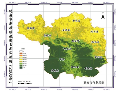 革命圣地延安是中国退耕还林第一市,20年来,陕北延安经历了一场由黄到绿、由绿变美、由美而富的历史性变迁。这是延安市退耕还林前(2000年)后(2020年)遥感植被覆盖度对比图。