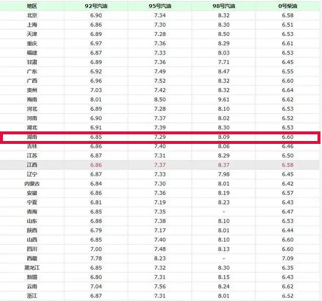 6月25日,全国加油站92、95号汽油最新售价
