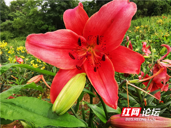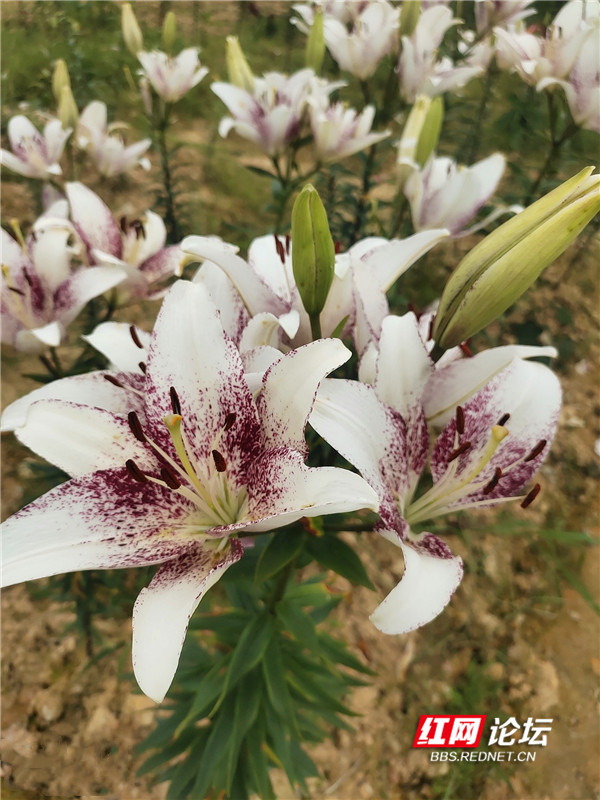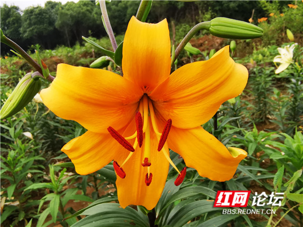 龙山百合,是湖南省龙山县特产,国家地理标志产品。在龙山县百合种质资源圃和世界百合博物馆,我们看到了红、黄、紫、橙等各种颜色的百合。统计资料显示,这里收集和种植国内外百合种质资源多达595个。