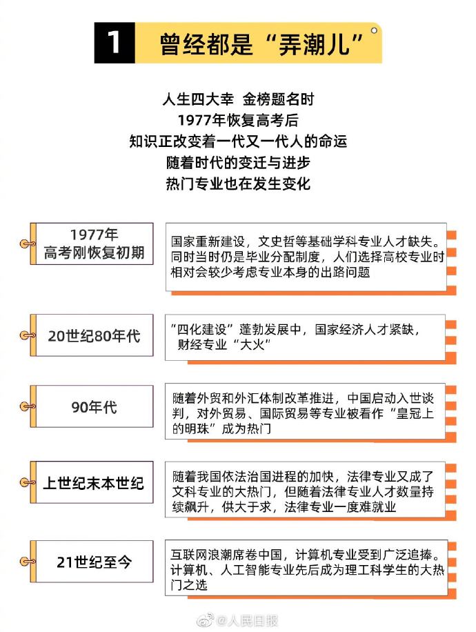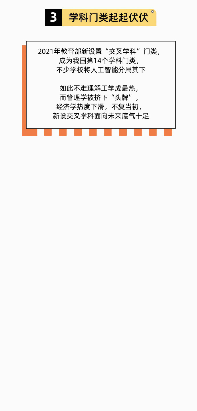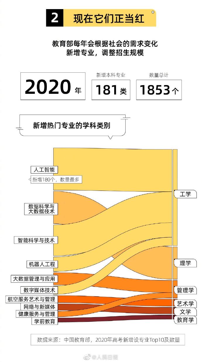 2021年,教育部新设置“交叉学科”门类,成为我国第14个学科门类,不少学校将人工智能专业分属其下。随着时代变迁,热门专业也在发生变化。哪些学科是时下热门的专业,哪些专业热度不复当初?高考志愿选实用的还是喜欢的?戳图了解↓↓