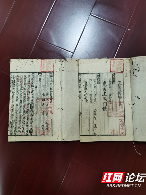 下午下班回家后,第一件事就是将这个装有《重刊补遗古今事文聚类》的大纸箱抱进三楼书房。用剪刀拆开纸箱,一股古旧书的味道扑鼻而来。五个大夹板,每个夹板夹住20册书,我小心翼翼地打开每个夹板,将书摆放在木地板上。当天晚上,我在书房里慢慢整理这些书,直至深夜十二点还没有结束,要不是太太打电话催促我睡觉,我很有可能摆弄到天亮。