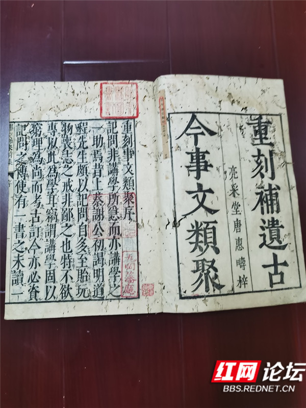 第二天,刚好是周末,不用上班,我把自己关在书房,借助“度娘”,慢慢了解、研究考究起这套书来。我初步考证,书房里这套《重刊补遗古今事文聚类》,让我惊讶。这套书不是陕西书商朋友所说的清早期版本,而是明代版本。分前、后、续、别、新、外、遗七集,为金陵唐氏亮采堂唐惠畴梓。