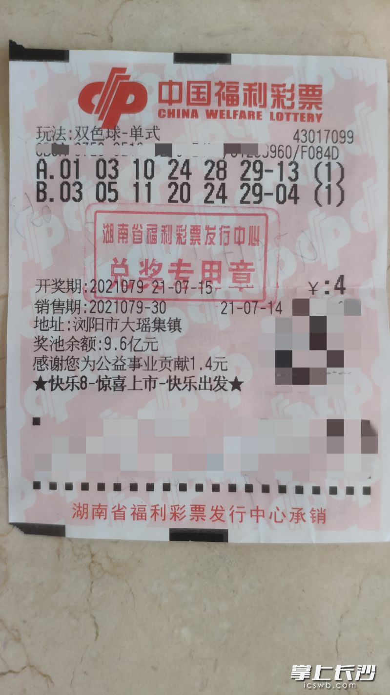 继7月11日2021077期双色球一等奖643万元在长沙中出后,在7月15日双色球2021079期中,来自长沙浏阳市大瑶镇的一中年男性彩民再次夺得一“金”,喜获730万元大奖。