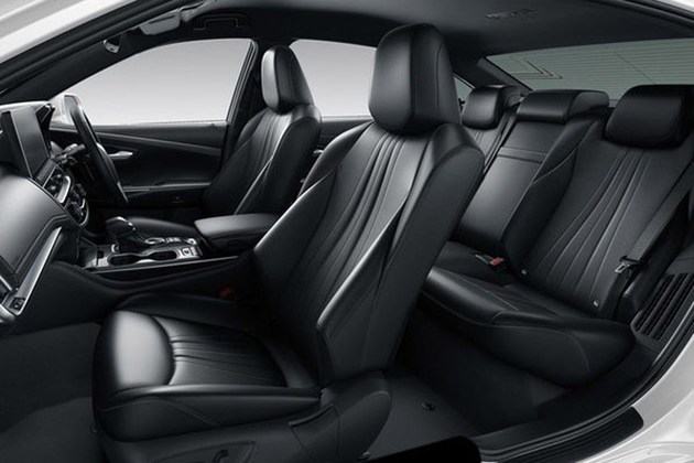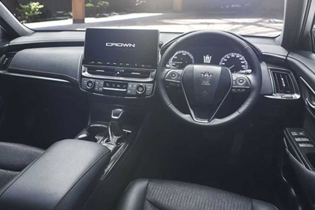 在内饰部分,中控台上下部分采用了不同配色,空调中央出风口和副驾驶安全气囊被布置在上层,四辐式方向盘加入了木饰装饰,多媒体显示屏下部的储物盒盖还在木饰装饰上印有“皇冠”标识。座椅有黑色真皮、米色织物和灰色织物三种选择。