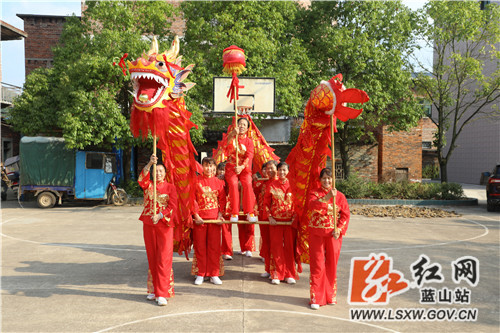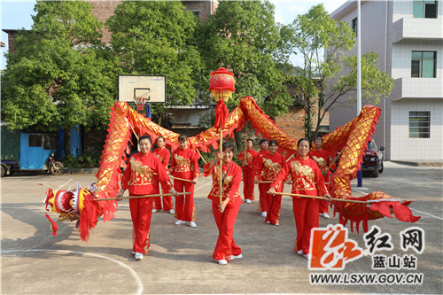白天干农活,晚上休闲时,聚在一起舞龙,慢慢名气大了,附近有活动或有喜事也被请去表演。“舞龙就是龙家坊的老传统了,我们舞出的这些造型,大部分都是传承下来的,像‘山’形舞龙花,就是指蓝山的山。舞龙可以锻炼身体,愉悦身心,老少皆宜,我们欢迎更多姐妹加入我们的队伍。”说起舞龙队的“发展史”,队员龙国清感触很深。