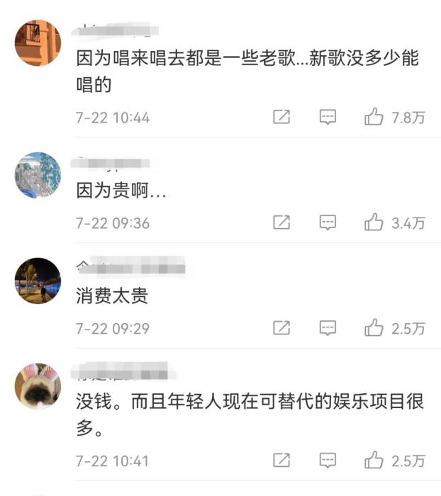 图为话题#为什么现在人们去KTV少了#网友讨论截图 。