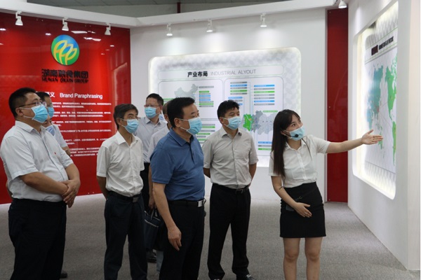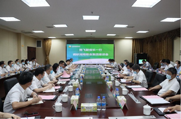 8月6日,湖南省副省长陈飞一行赴湖南粮食集团调研,省政府副秘书长周义祥、省国资委主任丛培模、省粮食和物资储备局局长陈冬贵、省财政厅副厅长林德勇、省市场监管局二级巡视员邓建军、长沙市副市长邱继兴及市国资委、市发改委相关负责人等陪同调研。