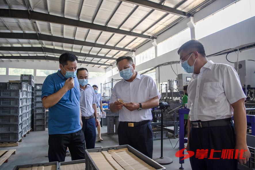 8月9日下午,市委书记雷绍业在洪江区调研。图为雷绍业在恒裕竹木开发有限公司了解企业生产经营、技术创新等情况。