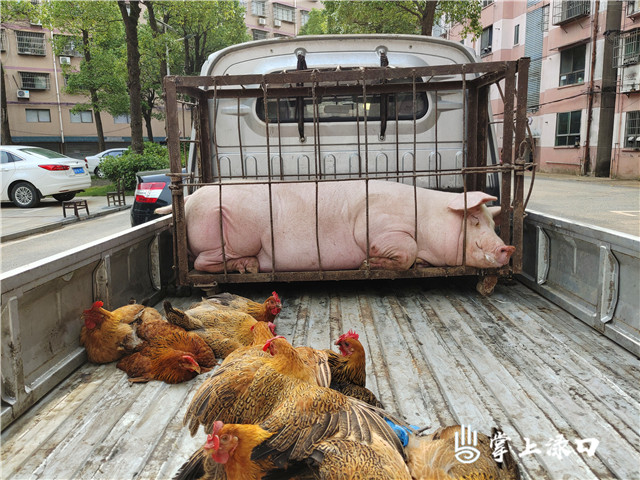 8月13日一大早,渌口镇机关院内迎来了11位特殊的“客人”。这些客人是花园村村委会送给渌口镇的1头猪和10只鸡,承载了花园村全体村民对渌口镇一线抗疫工作人员满满的关爱和支持。